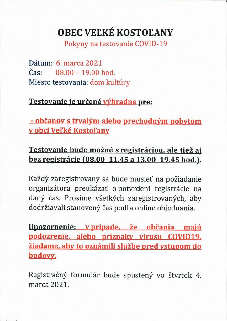 Pokyny k testovaniu dňa 6.3.2021